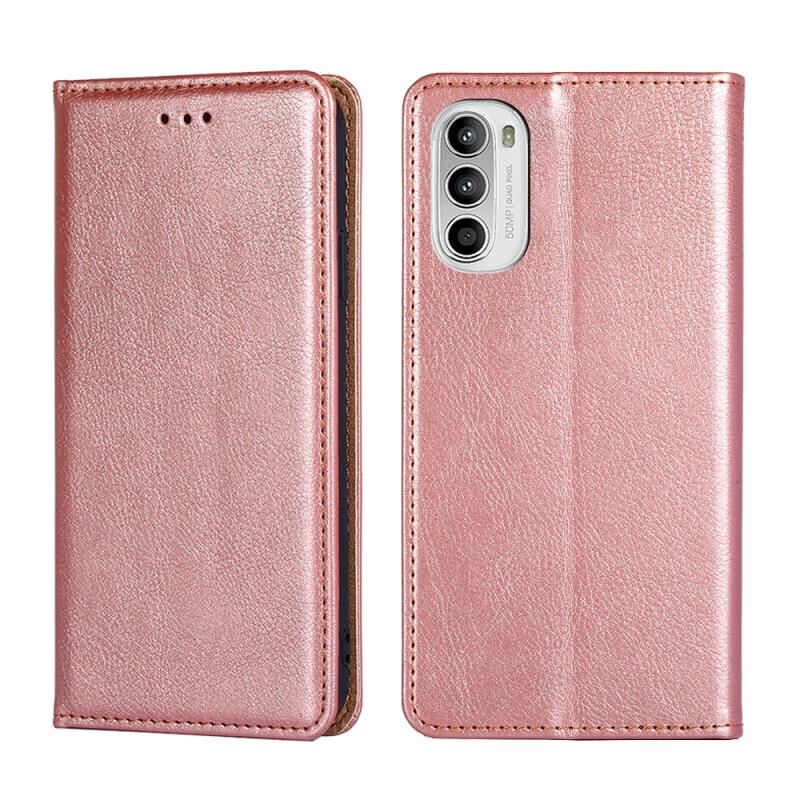 Για Motorola Moto G52 4G / G82 5G Γυαλιστερό λάδι στερεό χρώμα μαγνητική δερμάτινη θήκη τηλεφώνου (ροζ χρυσό)