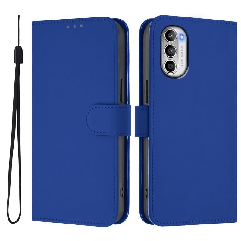 Για Motorola Moto G52 4G / G82 5G δέρμα αίσθηση στερεό χρώμα δερμάτινη θήκη τηλεφώνου με κορδόνι (σκούρο μπλε)