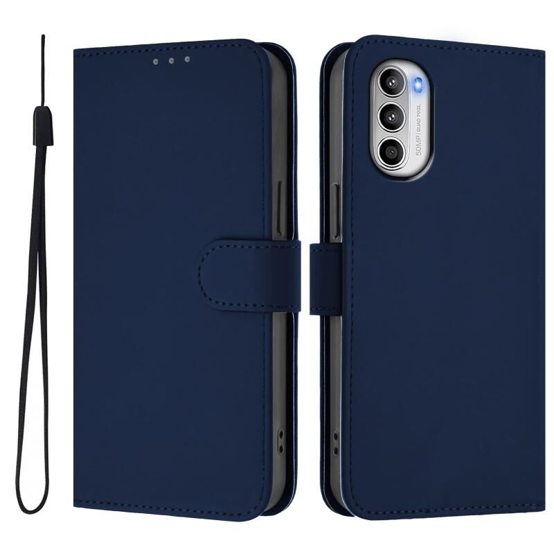 Για Motorola Moto G52 4G / G82 5G δέρμα αίσθηση στερεό χρώμα δερμάτινη θήκη τηλεφώνου με κορδόνι (Navy Blue)