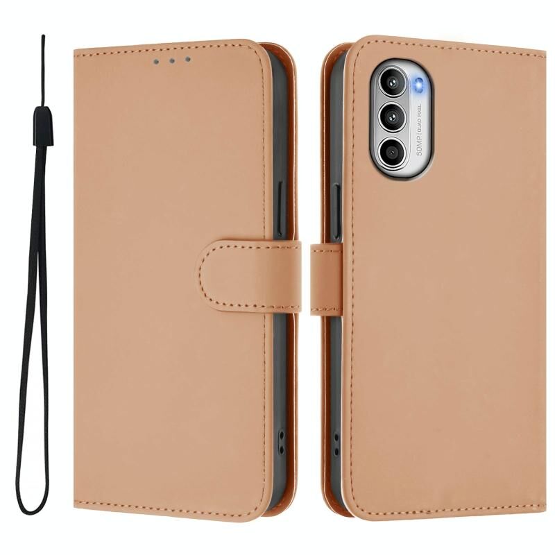 Για Motorola Moto G52 4G / G82 5G δέρμα αίσθηση στερεό χρώμα δερμάτινη θήκη τηλεφώνου με κορδόνι (Nude)