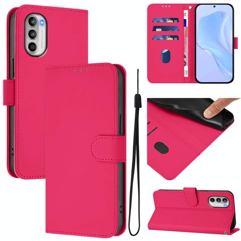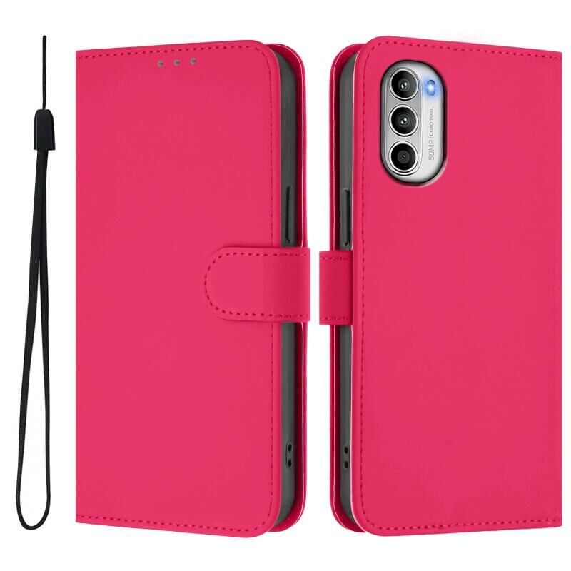 Για Motorola Moto G52 4G / G82 5G δέρμα αίσθηση στερεό χρώμα δερμάτινη θήκη τηλεφώνου με κορδόνι (Rose Red)