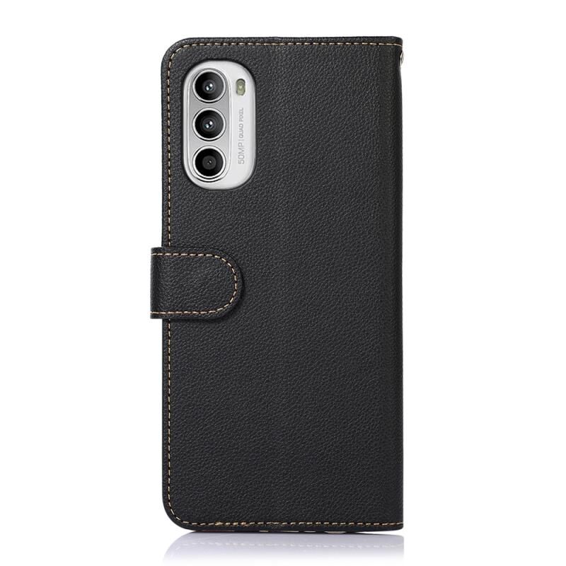 Θήκη κινητού τηλεφώνου Motorola Moto G52 4G KHAZNEH με δερμάτινη υφή Litchi και προστασία RFID (Μπλε)