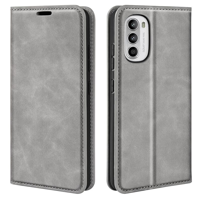 Για Motorola Moto G52 4G Retro-skin Μαγνητική δερμάτινη θήκη τηλεφώνου με αναρρόφηση (γκρι)