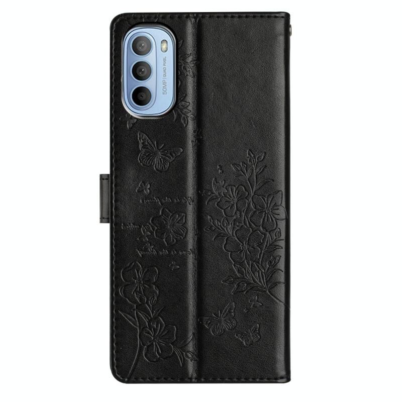 Θήκη τηλεφώνου δερμάτινη για Motorola Moto G52 με σχέδια πεταλούδες και λουλούδια (Χρυσό)