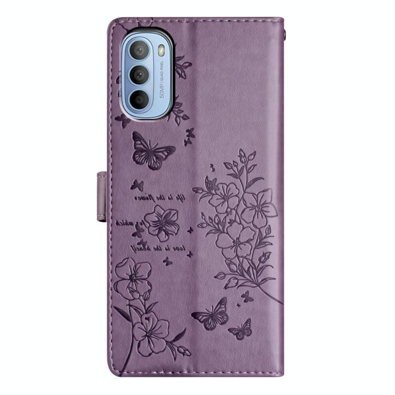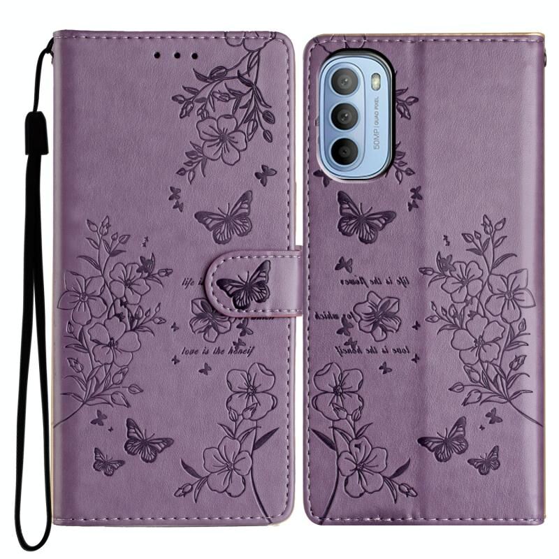 Θήκη τηλεφώνου δερμάτινη για Motorola Moto G52 με σχέδια πεταλούδες και λουλούδια (Χρυσό)