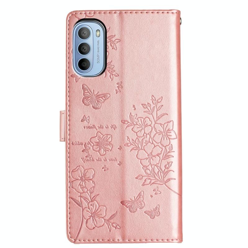 Θήκη τηλεφώνου δερμάτινη για Motorola Moto G52 με σχέδια πεταλούδες και λουλούδια (Χρυσό)