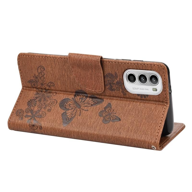 Θήκη τηλεφώνου δέρμα κατακόρυφης αναδίπλωσης με ανάγλυφο σχέδιο πεταλούδας για Motorola Moto G52 (Μπλε)