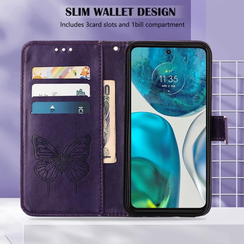 Για Motorola Moto G52 ανάγλυφη πεταλούδα δερμάτινη θήκη τηλεφώνου (σκούρο μοβ)