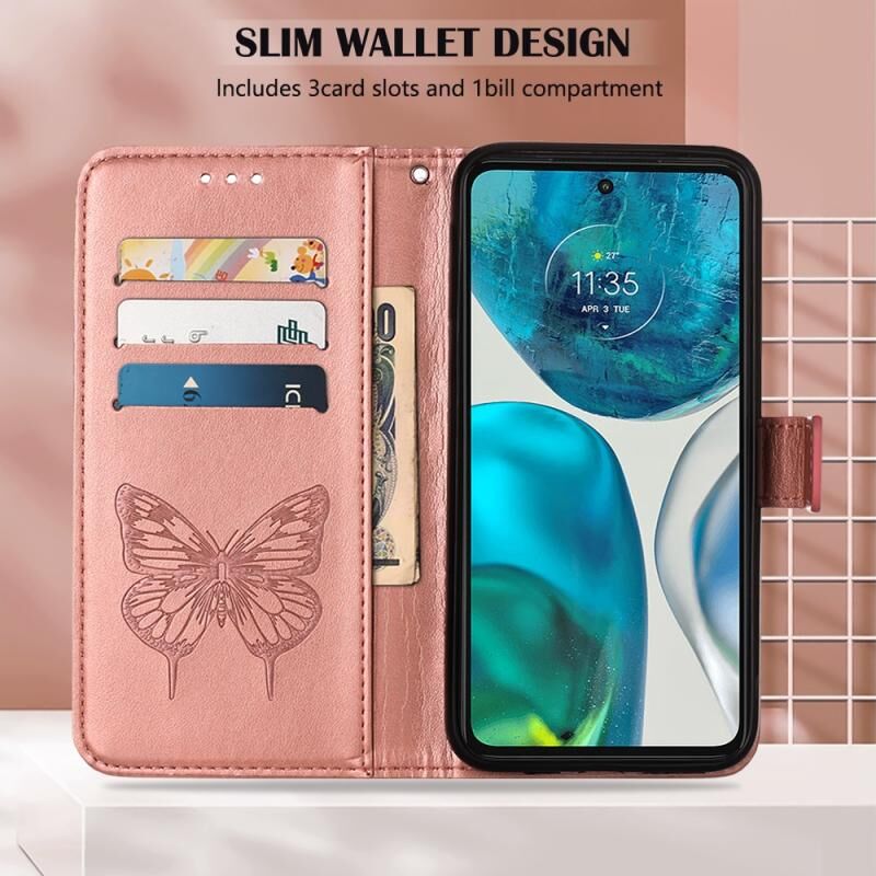 Για Motorola Moto G52 ανάγλυφη πεταλούδα δερμάτινη θήκη τηλεφώνου (ροζ χρυσό)