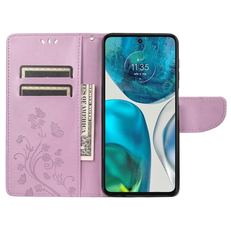Θήκη τηλεφώνου από δέρμα με σχέδιο ανάγλυφου πεταλούδας για Motorola Moto G52 (Πράσινο)