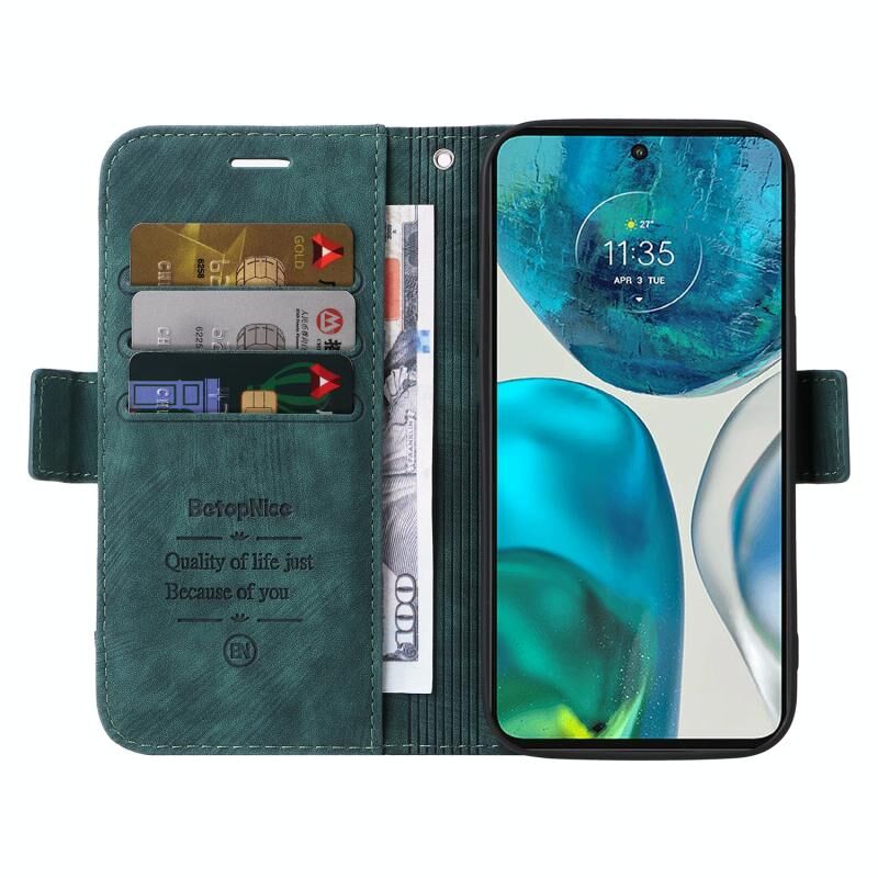 Θήκη τηλεφώνου από δέρμα με διπλή αγκράφα για Motorola Moto G52 / G82 (Μωβ) (πράσινο)