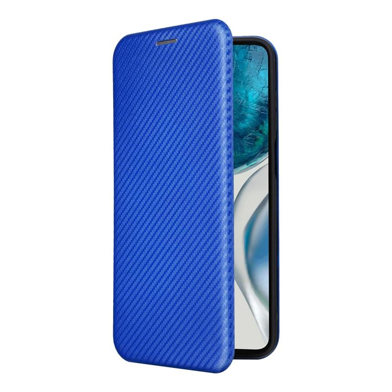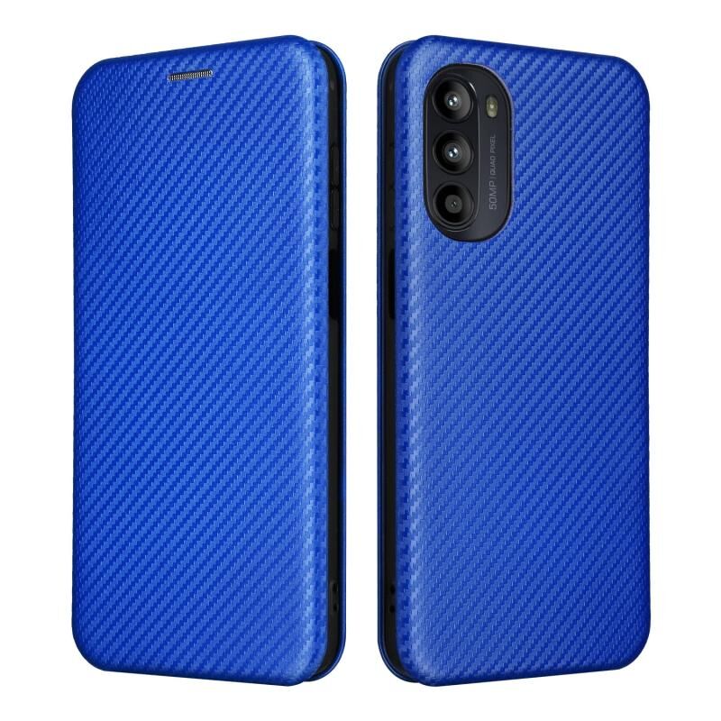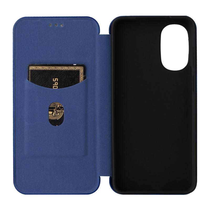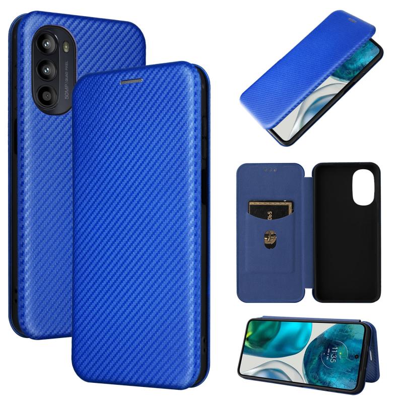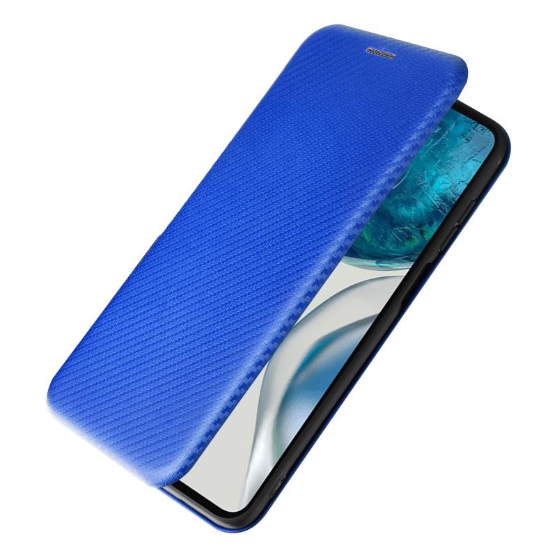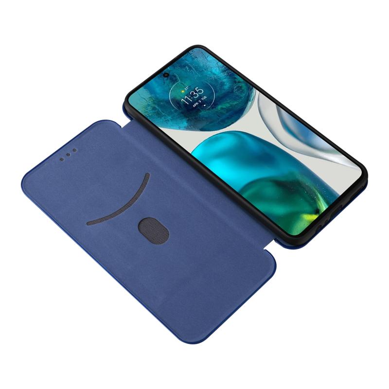Θήκη τηλεφώνου δερμάτινη οριζόντιας αναδίπλωσης με υφή ανθρακονημάτων για Motorola Moto G52/G82 (Καφέ)