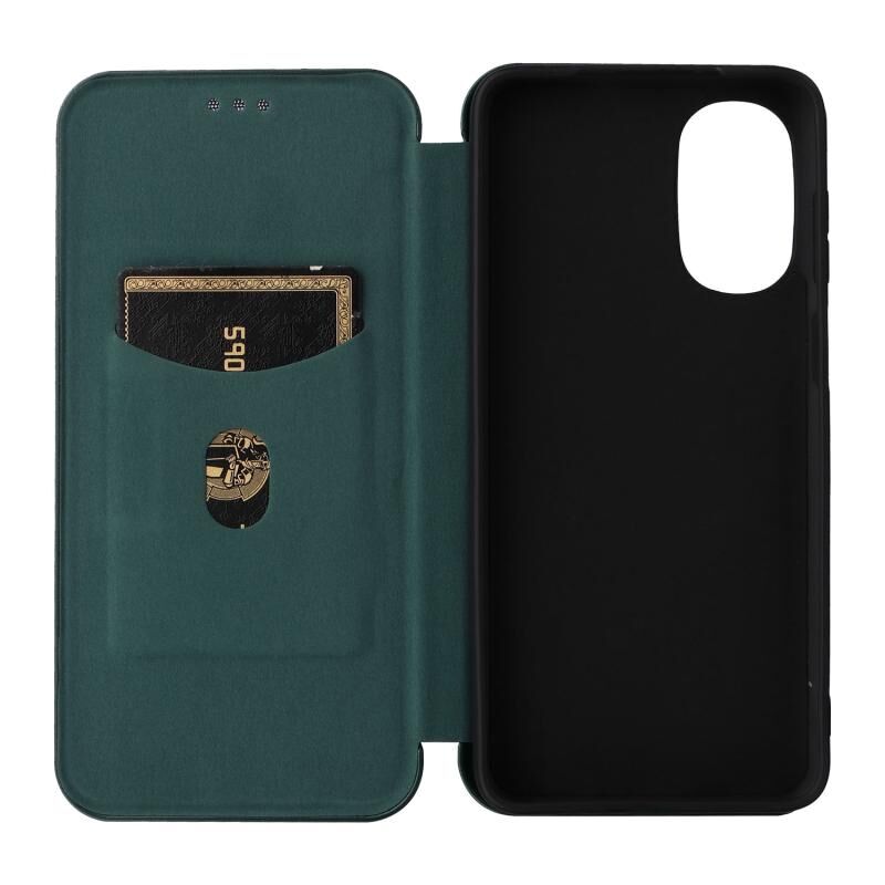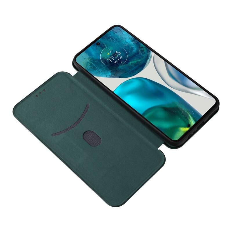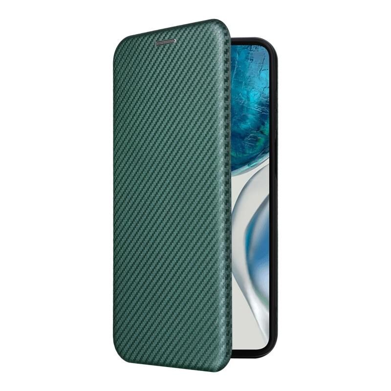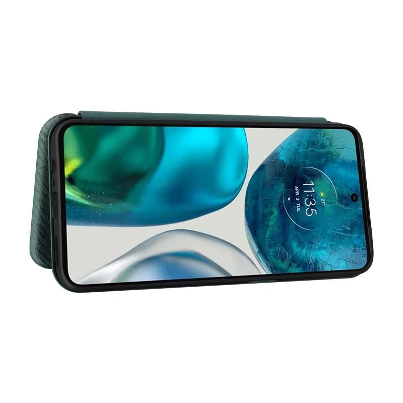 Θήκη τηλεφώνου δερμάτινη οριζόντιας αναδίπλωσης με υφή ανθρακονημάτων για Motorola Moto G52/G82 (πράσινο)