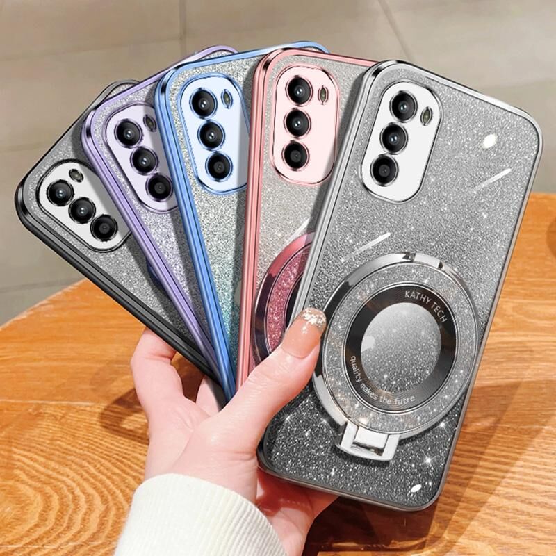 Για Motorola Moto G52 / G82 Επιμεταλλωμένο διαβάθμιση Glitter στρογγυλό κάτοχος TPU τηλέφωνο υπόθεση (μαύρο)