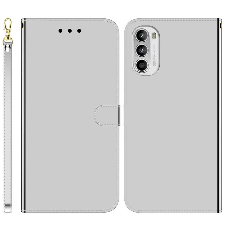 Για Motorola Moto G52 Απομιμητικά καθρέφτη επιφάνεια οριζόντια Flip δέρμα τηλέφωνο υπόθεση (Ασημί)