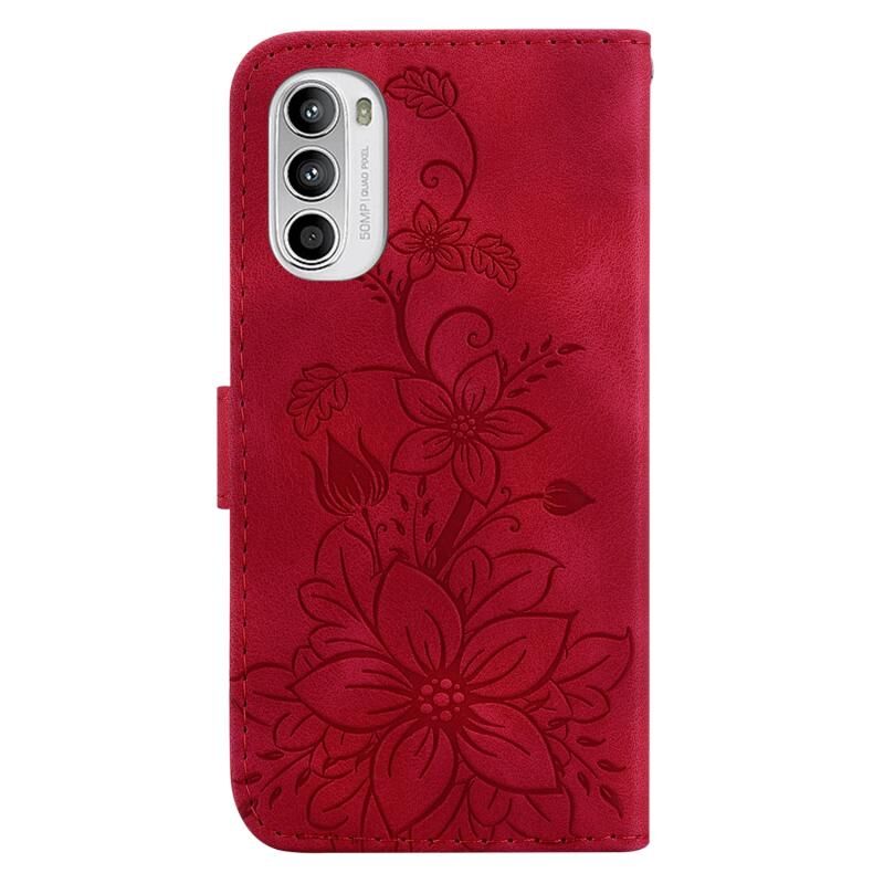 Θήκη τηλεφώνου από ανάγλυφο δέρμα για Motorola Moto G52 Lily (Πράσινο)