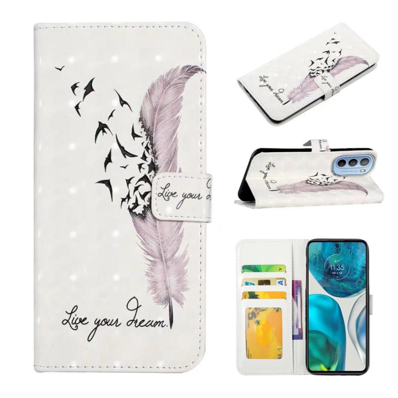 For Motorola Moto G52 Oil Embossed 3D Drawing Leather Phone Case(Feather)