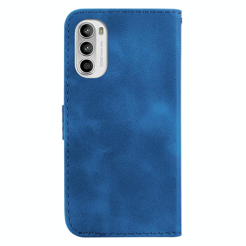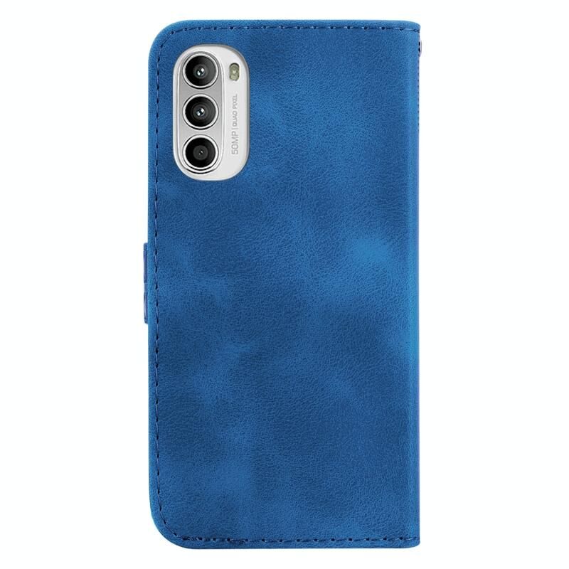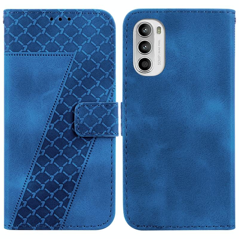 For Motorola Moto G52 Seven-shaped Embossed Leather Phone Case(Blue)