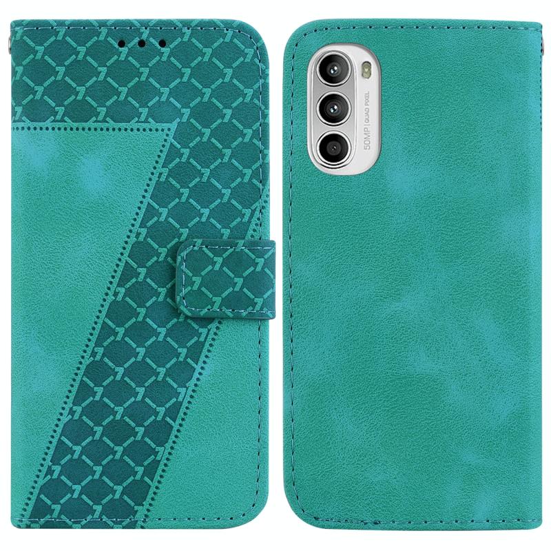 For Motorola Moto G52 Seven-shaped Embossed Leather Phone Case(Green)
