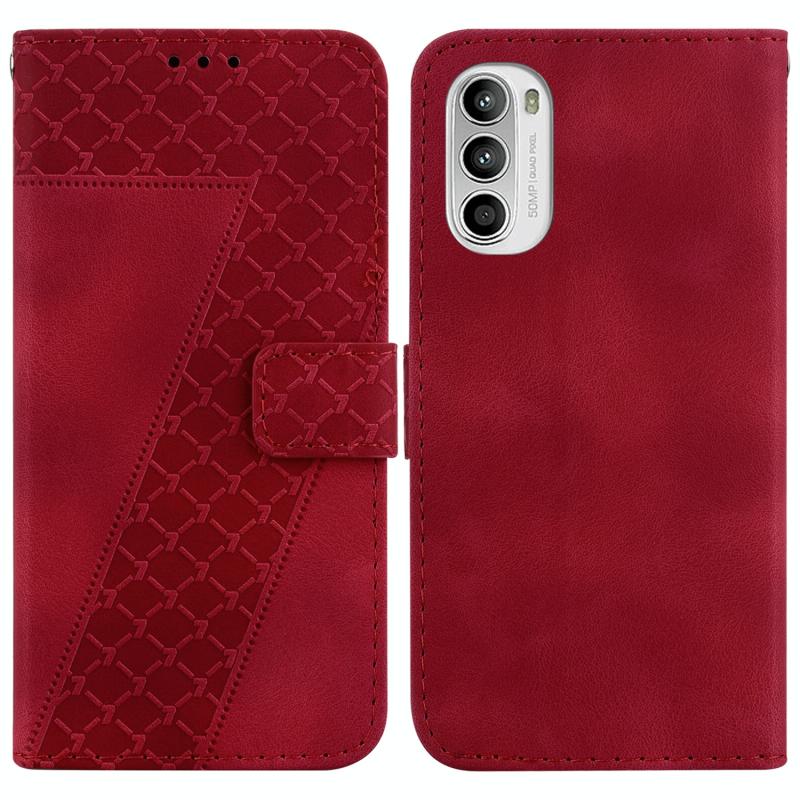 For Motorola Moto G52 Seven-shaped Embossed Leather Phone Case(Red)