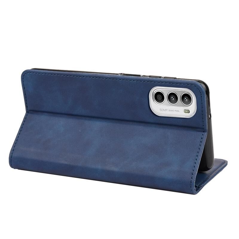 Θήκη κινητού τηλεφώνου από δέρμα με αίσθηση αφής και ραφές για Motorola Moto G52 (Μπλε)
