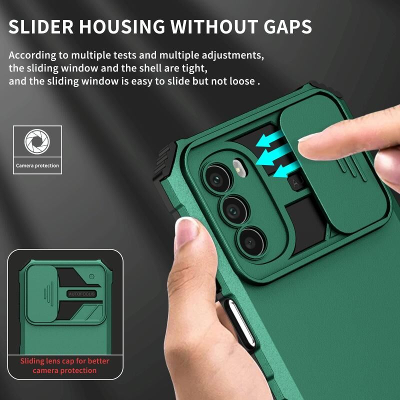 Για Motorola Moto G52 Στερεοσκοπικό κάτοχος συρόμενη θήκη τηλεφώνου Camshield (πράσινο)