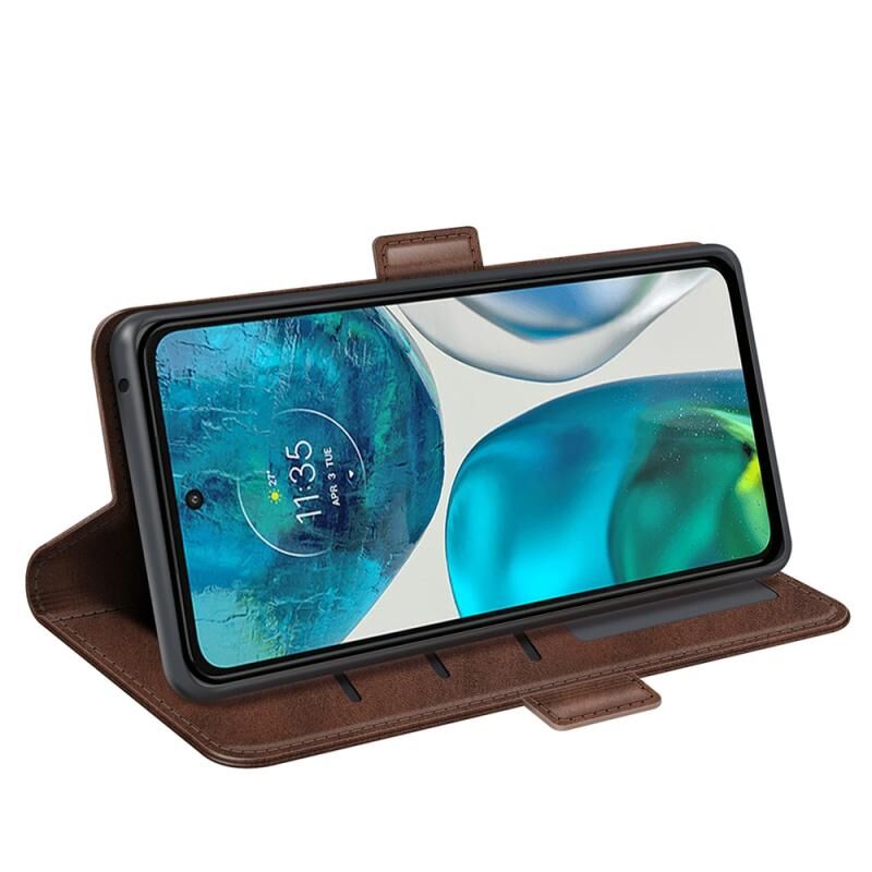 Για Motorola Moto G52j 5G Διπλής όψης μαγνητική πόρπη Flip δερμάτινη θήκη τηλεφώνου (καφέ)