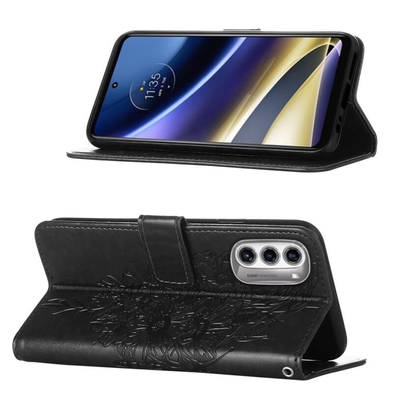 Για Motorola Moto G52j 5G ανάγλυφη πεταλούδα Flip δερμάτινη θήκη τηλεφώνου (μαύρο)