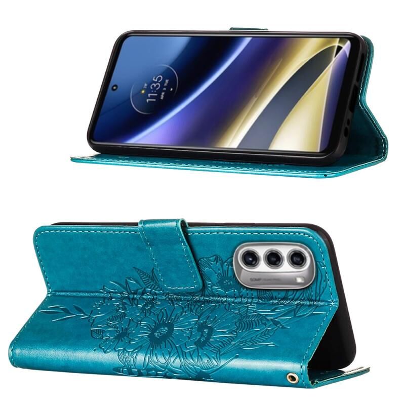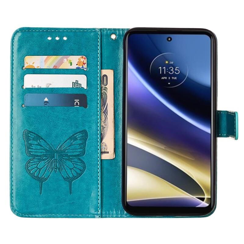 Για Motorola Moto G52j 5G ανάγλυφη πεταλούδα Flip δερμάτινη θήκη τηλεφώνου (μπλε)