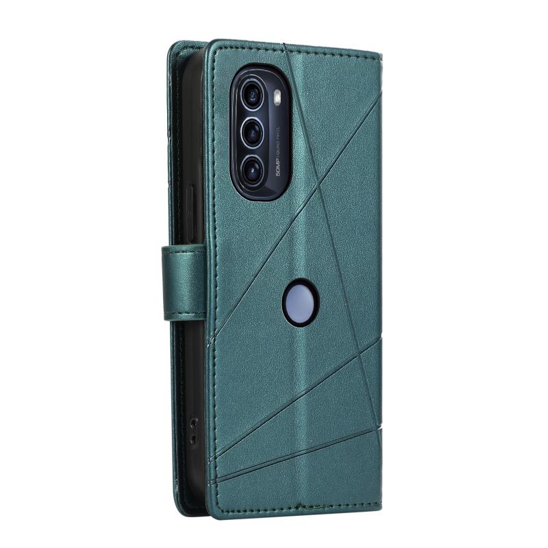Θήκη τηλεφώνου από γνήσιο δέρμα με ανάγλυφη υφή και λεπτή γραμμή για Motorola Moto G52j 5G (Πράσινο)