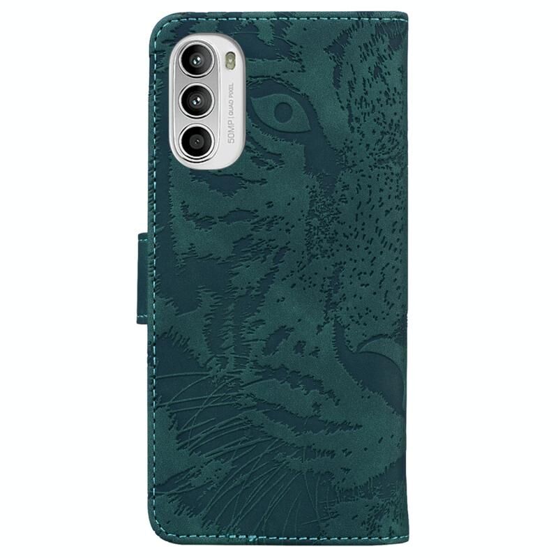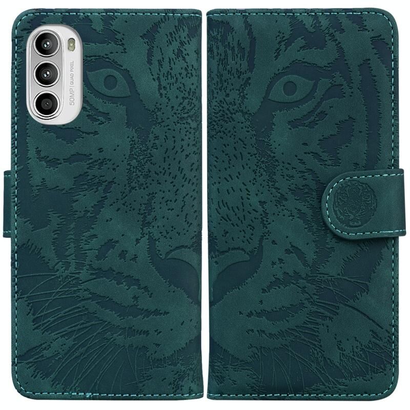 Για Motorola Moto G52J Ιαπωνία έκδοση Tiger ανάγλυφο μοτίβο οριζόντια Flip δέρμα τηλέφωνο υπόθεση (πράσινο)