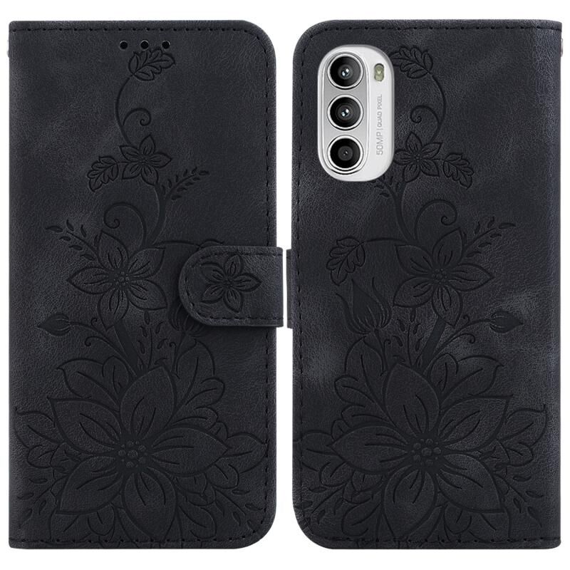 Θήκη τηλεφώνου από δέρμα με ανάγλυφο Lily για Motorola Moto G52J JP Version (Πράσινο)