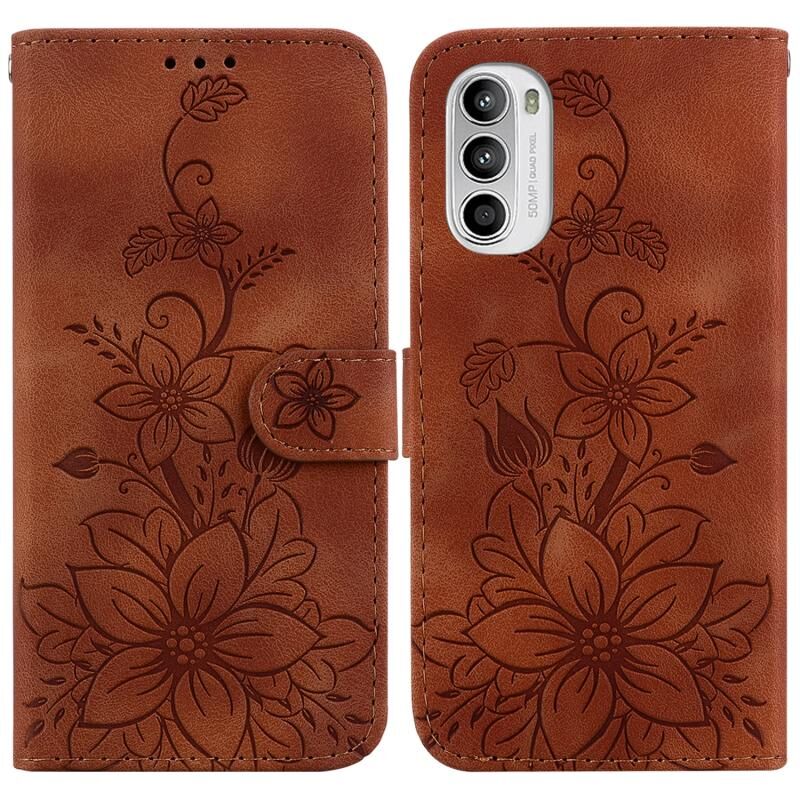Θήκη τηλεφώνου από δέρμα με ανάγλυφο Lily για Motorola Moto G52J JP Version (Πράσινο)