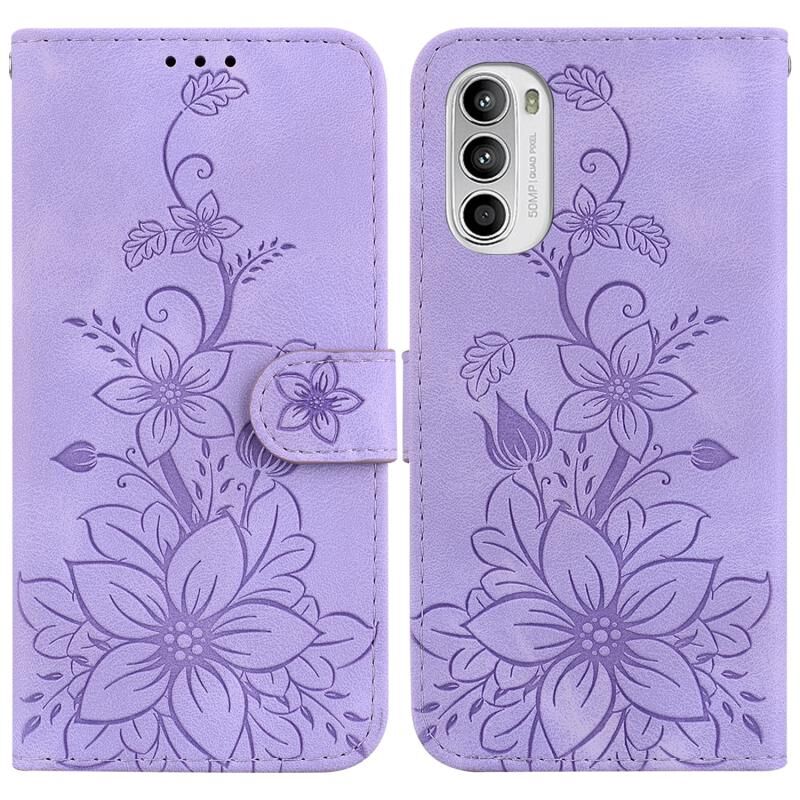 Θήκη τηλεφώνου από δέρμα με ανάγλυφο Lily για Motorola Moto G52J JP Version (Πράσινο)