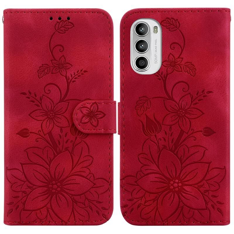 Θήκη τηλεφώνου από δέρμα με ανάγλυφο Lily για Motorola Moto G52J JP Version (Πράσινο)