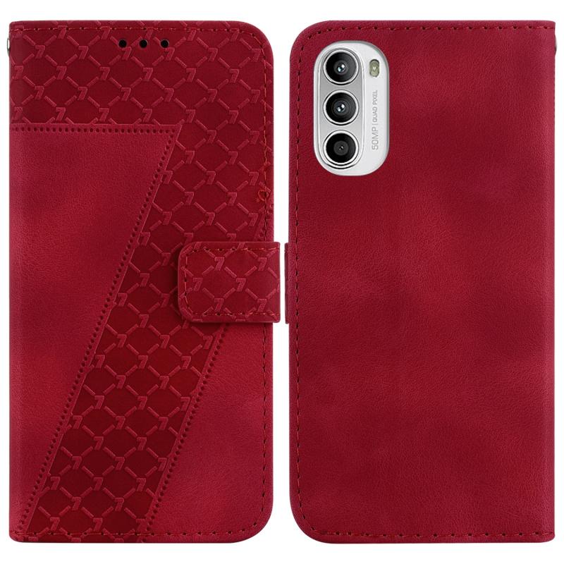 For Motorola Moto G52J JP Version Seven-shaped Embossed Leather Phone Case(Red)
