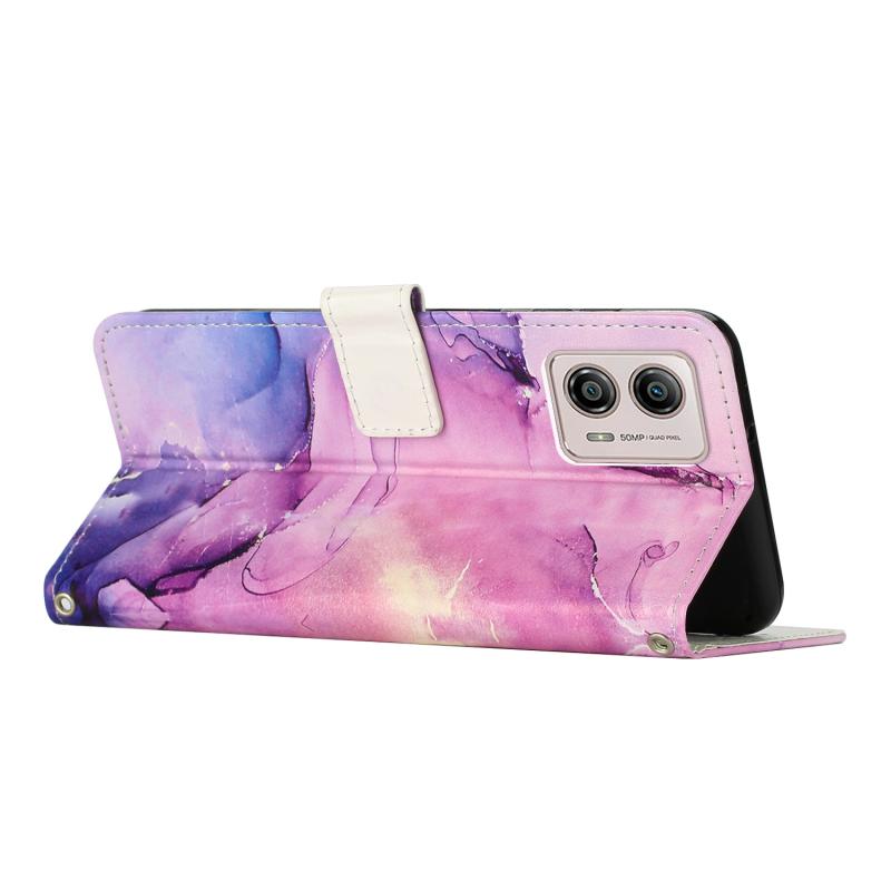 Θήκη κινητού τηλεφώνου Motorola Moto G53 5G/G13 4G/G23 4G, δερμάτινη με σχέδιο μαρμάρου, διαγώνια (Μωβ)