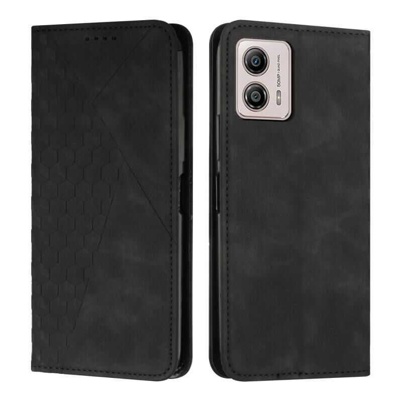 Για Motorola Moto G53 5G/G13 4G/G23 4G Diamond Pattern Splicing Skin Feel Magnetic Phone Case (Μαύρο)