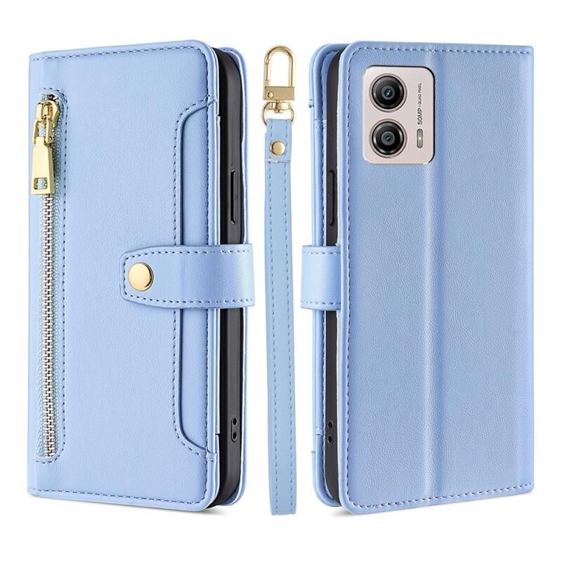 Θήκη κινητού τηλεφώνου από δέρμα με υφή προβάτου, με φερμουάρ και λουρί για το σώμα, για Motorola Moto G53 5G/G13 4G/G23 4G (Πορτοκαλί)