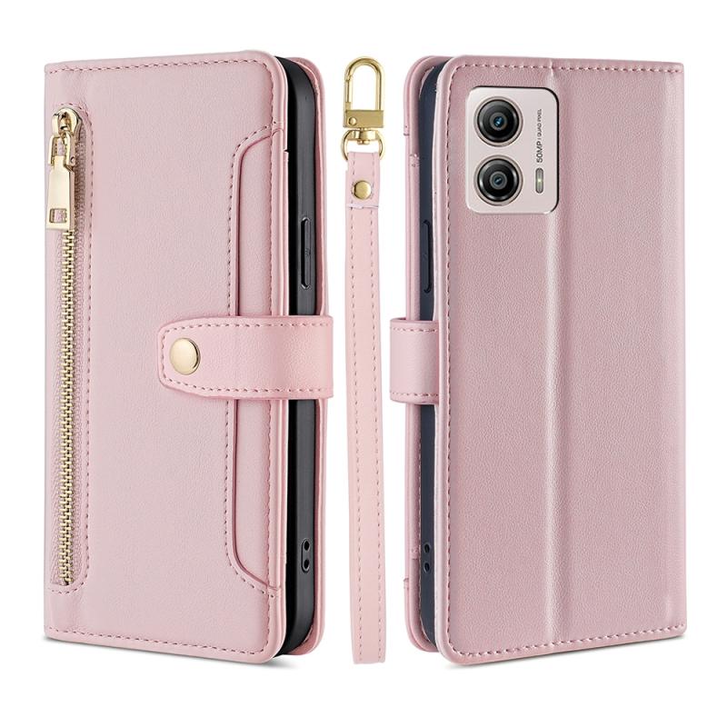 For Motorola Moto G53 5G/G13 4G/G23 4G Sheep Texture Cross-body Zipper Wallet Leather Phone Case(Pink)