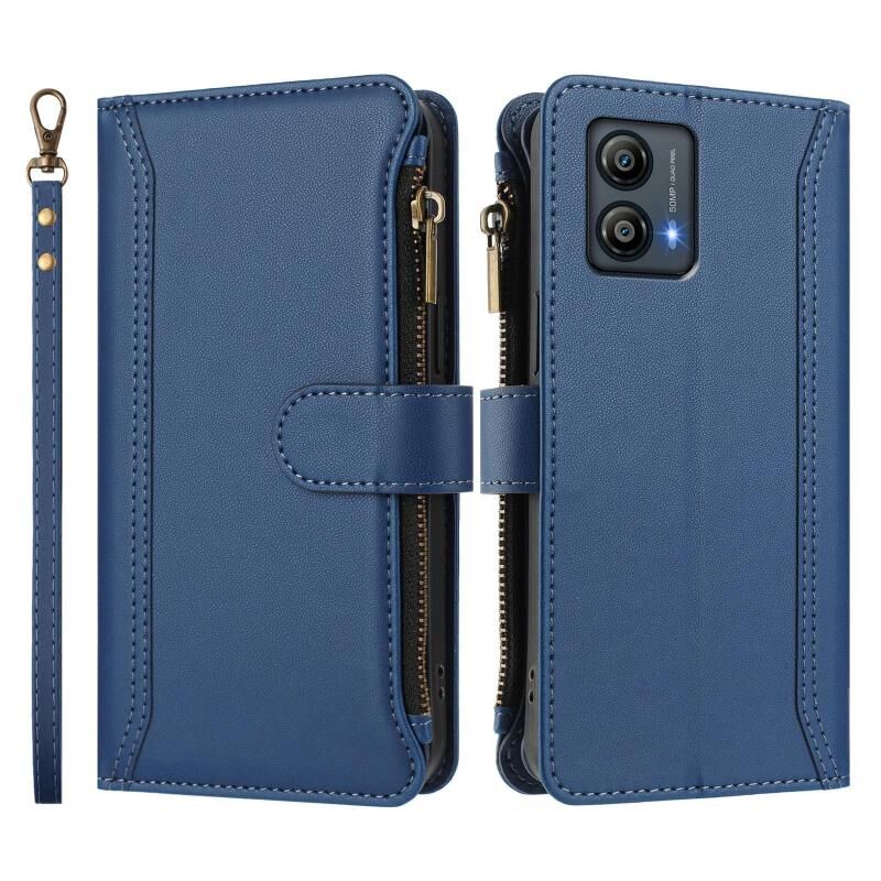 Για Motorola Moto G53 5G / G13 4G Μαγνητικό Κλείσιμο 9 Θήκες Κάρτας Δερμάτινη Θήκη με Φερμουάρ και Λουρί Χεριού (Σκούρο Μπλε)