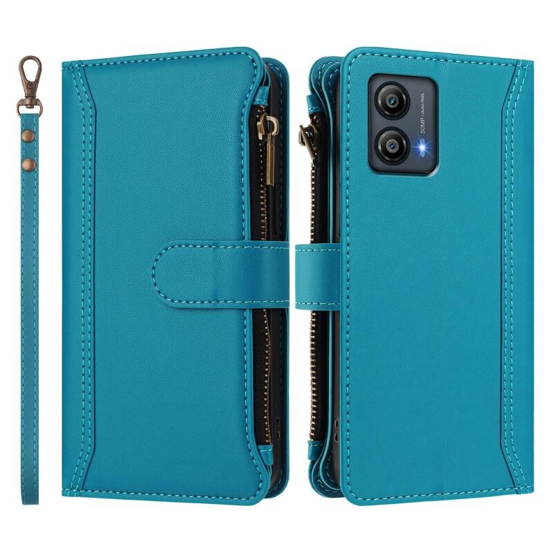 Για Motorola Moto G53 5G / G13 4G Μαγνητικό Κλείσιμο 9 Θήκες Κάρτας Δερμάτινη Θήκη με Φερμουάρ και Λουρί Χεριού (Τουρκουάζ)