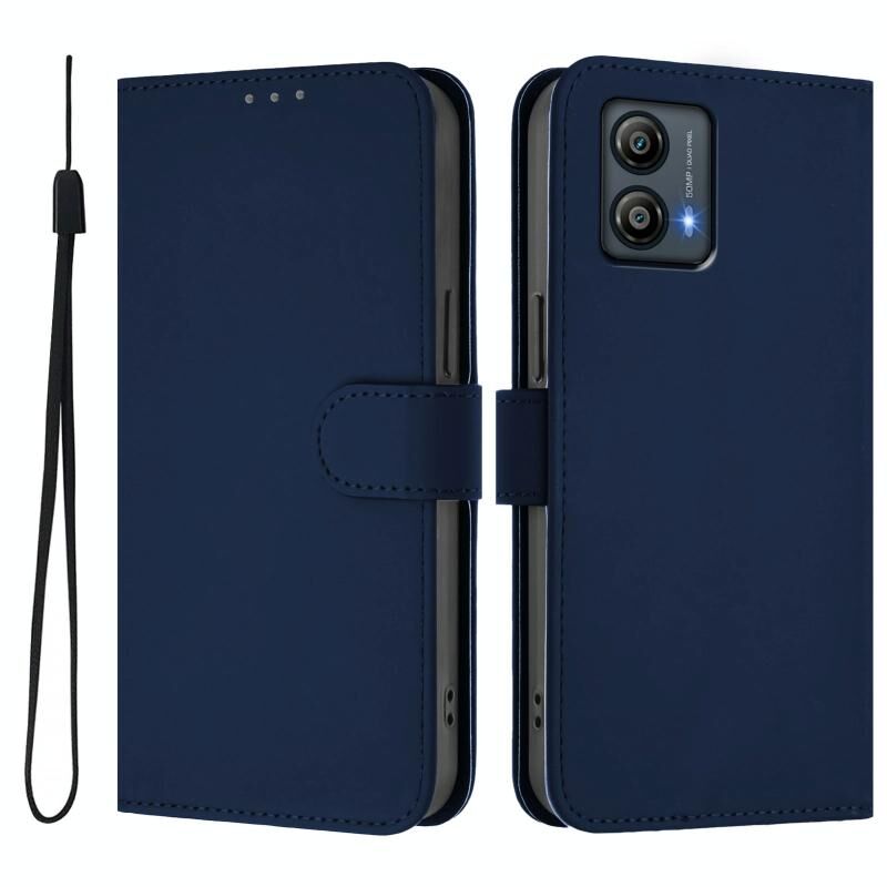 Για Motorola Moto G53 5G / G13 4G δέρμα αίσθηση στερεό χρώμα δερμάτινη θήκη τηλεφώνου με κορδόνι (Navy Blue)