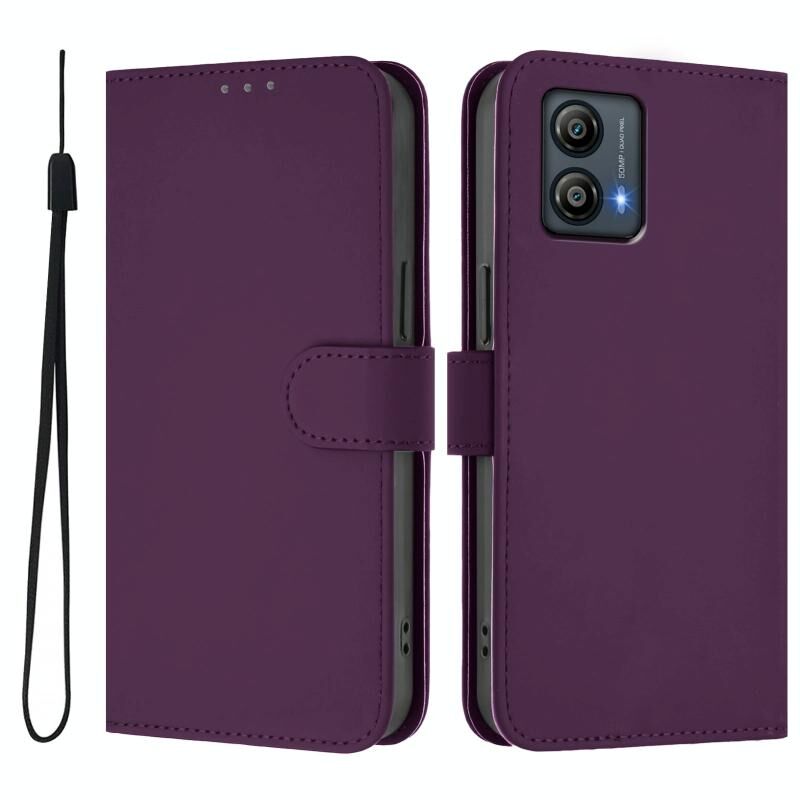 Για Motorola Moto G53 5G / G13 4G δέρμα αίσθηση στερεό χρώμα δερμάτινη θήκη τηλεφώνου με κορδόνι (Violet)