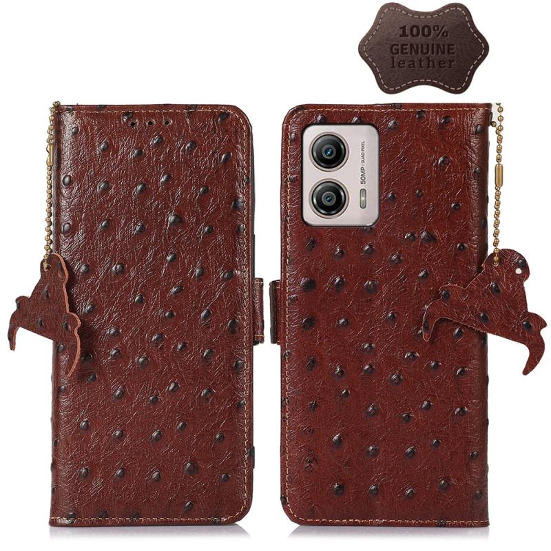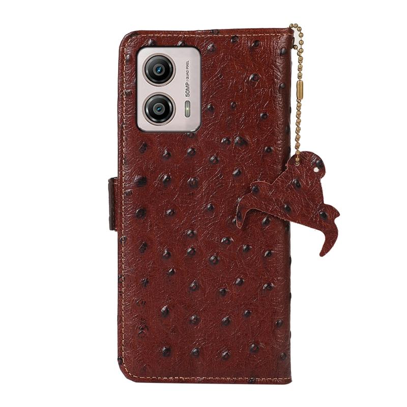 For Motorola Moto G53 5G / G13 / G23 Ostrich Pattern Genuine Leather RFID Phone Case(Coffee)