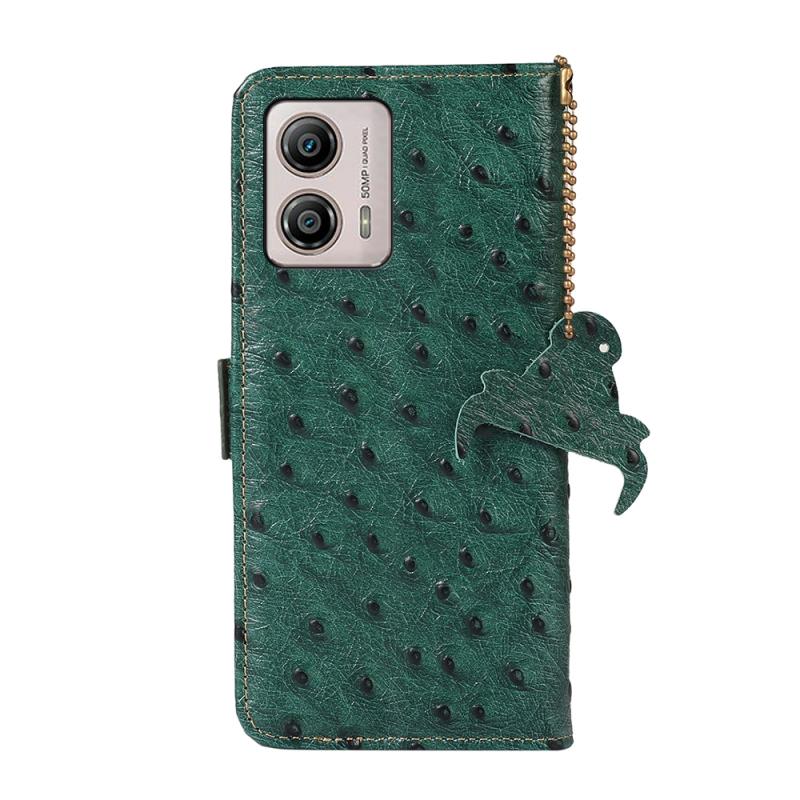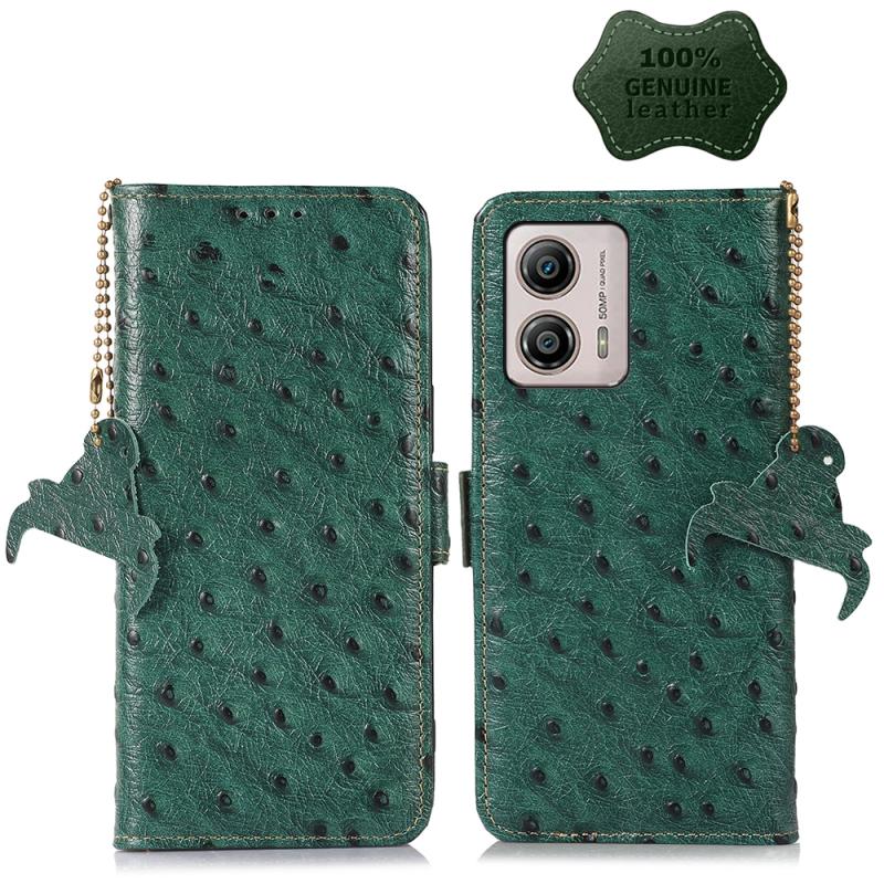 For Motorola Moto G53 5G / G13 / G23 Ostrich Pattern Genuine Leather RFID Phone Case(Green)