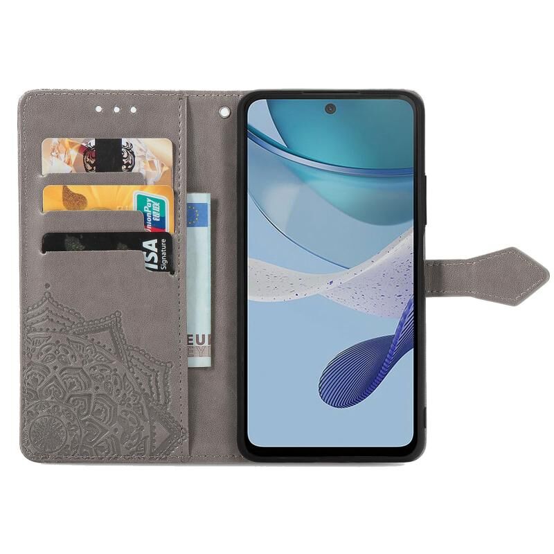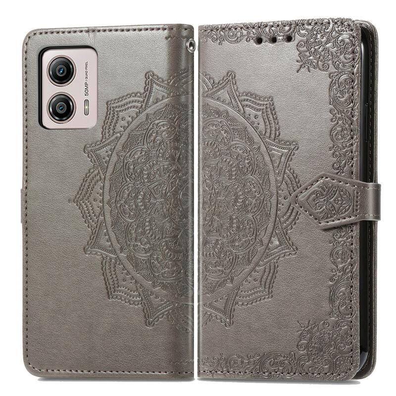 Για Motorola Moto G53 5G Θήκη Τηλεφώνου Δερμάτινη Flip Οριζόντια με ανάγλυφο σχέδιο Mandala Λουλούδι (Γκρι)