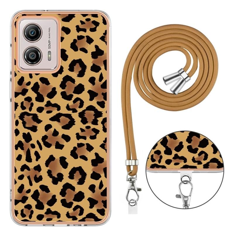 Θήκη τηλεφώνου με επιμετάλλωση διπλής όψης IMD με κορδόνι για Motorola Moto G53 / G13 / G23 (εκτύπωση λεοπάρδαλης)