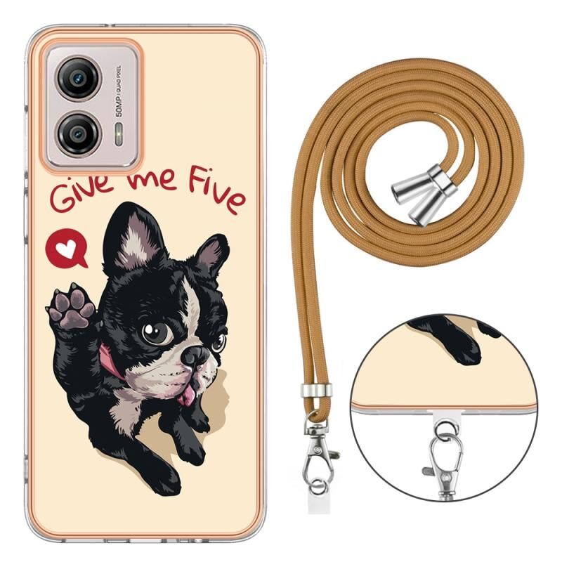 Θήκη τηλεφώνου με επιμετάλλωση διπλής όψης IMD με κορδόνι για Motorola Moto G53 / G13 / G23 (Lucky Dog)