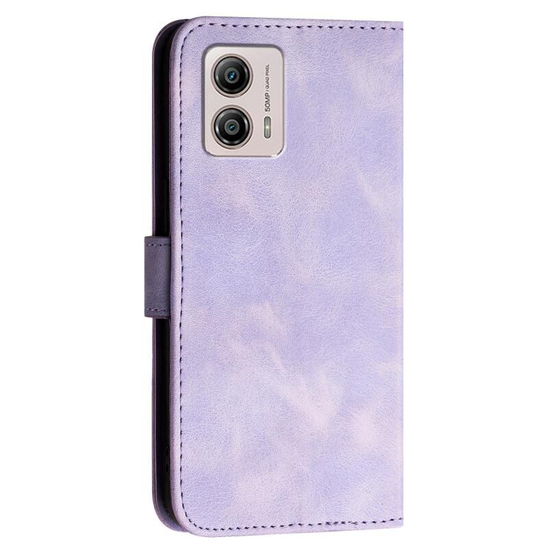 For Motorola Moto G53 / G13 / G23 Grid Butterfly Embossed Pattern Leather Phone Case with Lanyard(Light Purple)